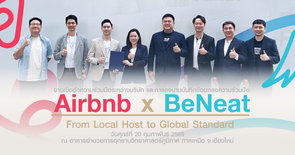 BeNeat X Airbnb ✍️✨ลงนามความร่วมมือเชิงกลยุทธ์ ยกระดับมาตรฐานบริการ สร้างอาชีพคุณภาพผ่านนวัตกรรมดิจิทัล📲🌍 วันศุกร์ที่ 20 กุมภาพันธ์ 2569 📅 BeNeat สตาร์ทอัพไทยด้านเทคโนโลยีบริการทำความสะอาดและบริหารจัดการที่พัก จับมือ Airbnb แพลตฟอร์มการท่องเที่ยวระดับโลก 🌍 ลงนามบันทึกความร่วมมือเชิงกลยุทธ์ โดยมี หอการค้าจังหวัดเชียงใหม่ และ อุทยานวิทยาศาสตร์และเทคโนโลยี มหาวิทยาลัยเชียงใหม่ (STeP)…