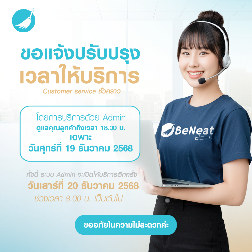 December 26, 2025 Happy New Year 2026 ✨🎄ปีใหม่นี้ BeNeat ขอส่งความสุขเล็กๆ ให้ทุกบ้านได้เริ่มต้นวันใหม่อย่างสบายใจ 🎄✨ Happy New Year 2026 ✨🎄 ปีใหม่นี้ BeNeat ขอส่งความสุขเล็กๆ ให้ทุกบ้านได้เริ่มต้นวันใหม่อย่างสบายใจ เพราะเราเชื่อว่า “บ้านที่สะอาด…ทำให้หัวใจอุ่นขึ้นเสมอ” 🤍 ขอให้ปี 2026 เต็มไปด้วยรอยยิ้มและความอบอุ่นในทุกวันค่ะ えがおあふれる一年を 🍵🍃 💙 ビニート 💙 BeNeat บริการสุดหัวใจ 🎄✨…