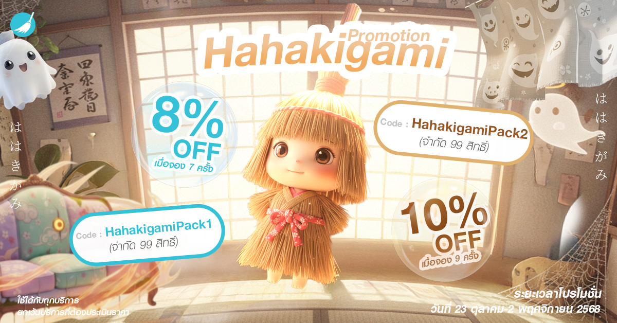 🧹 รับส่วนลด 8% เมื่อจองบริการ 7 ครั้ง ( Code: HahakigamiPack1 )