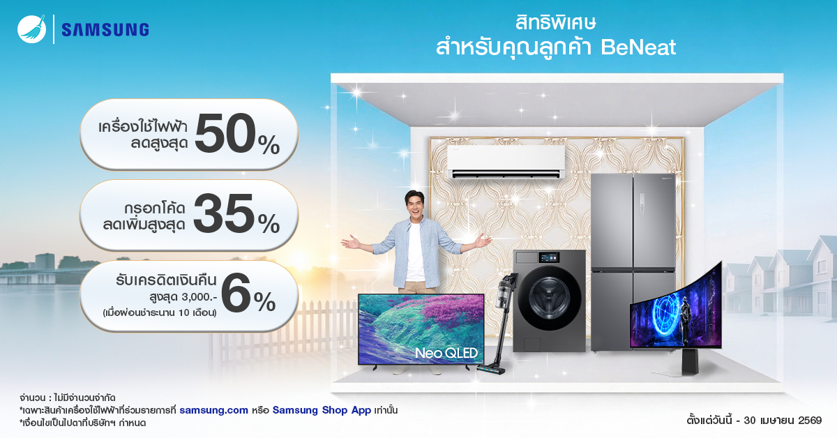 สิทธิพิเศษเฉพาะลูกค้า BeNeat เท่านั้น! ซื้อสินค้าเครื่องใช้ไฟฟ้าซัมซุงในราคาสุดพิเศษ ⭐