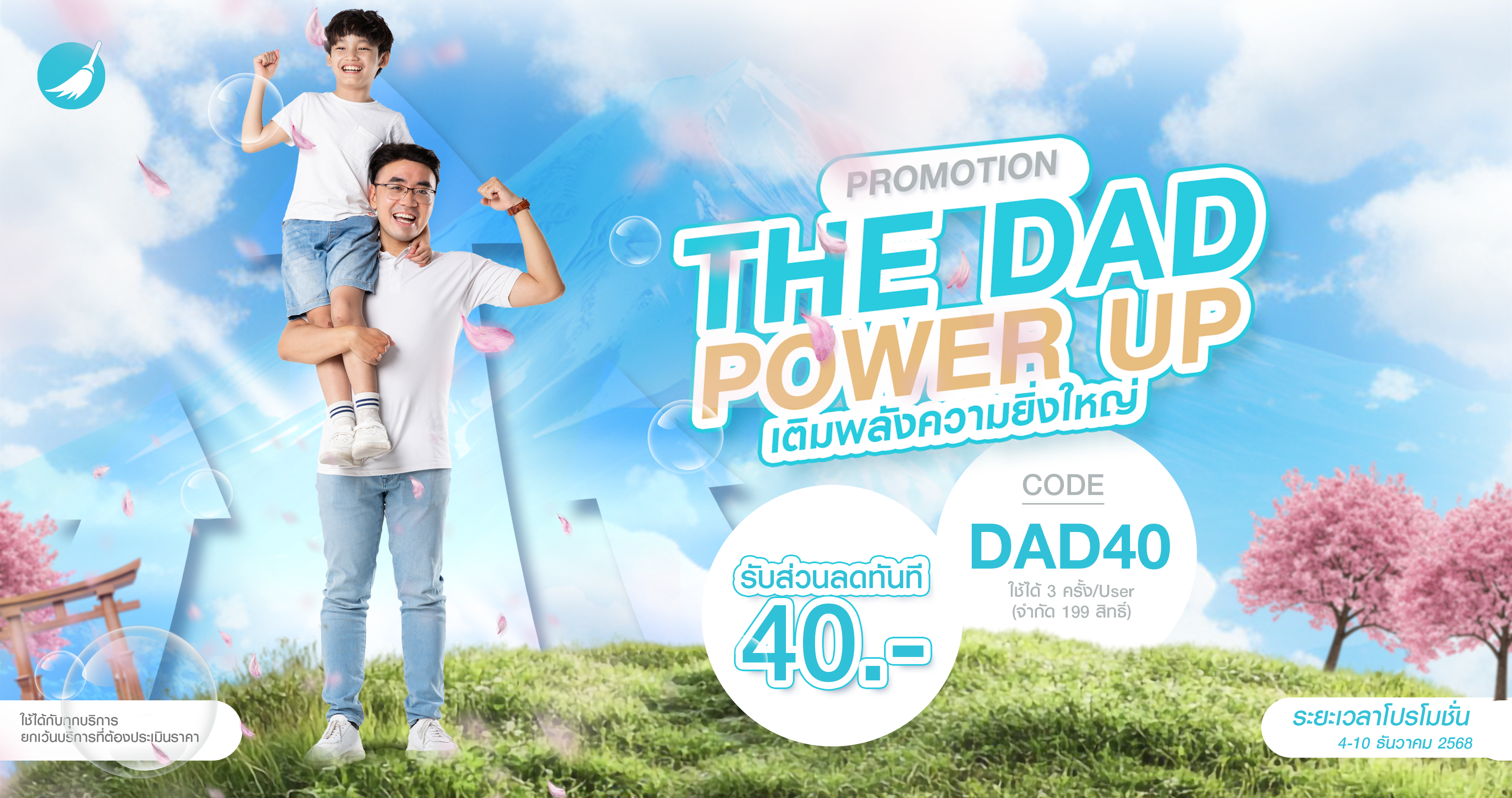 The DAD POWER UP Promotion 👨👧🚀 Power up your day 💪 Use code DAD40 to get 40 THB off. Let this discount be a small gift that helps lighten your housework. ☕🛋️